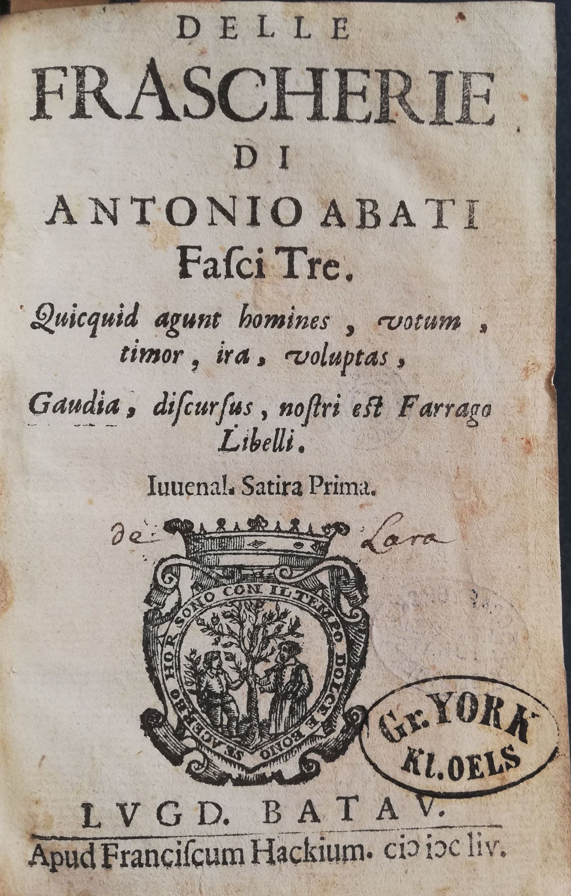 Il porto, novelle più vere, che finte.1664 BT: 3507 Standort: Wien – Österreichische Nationalbibliothek (ÖNB) Signatur: 25814-A