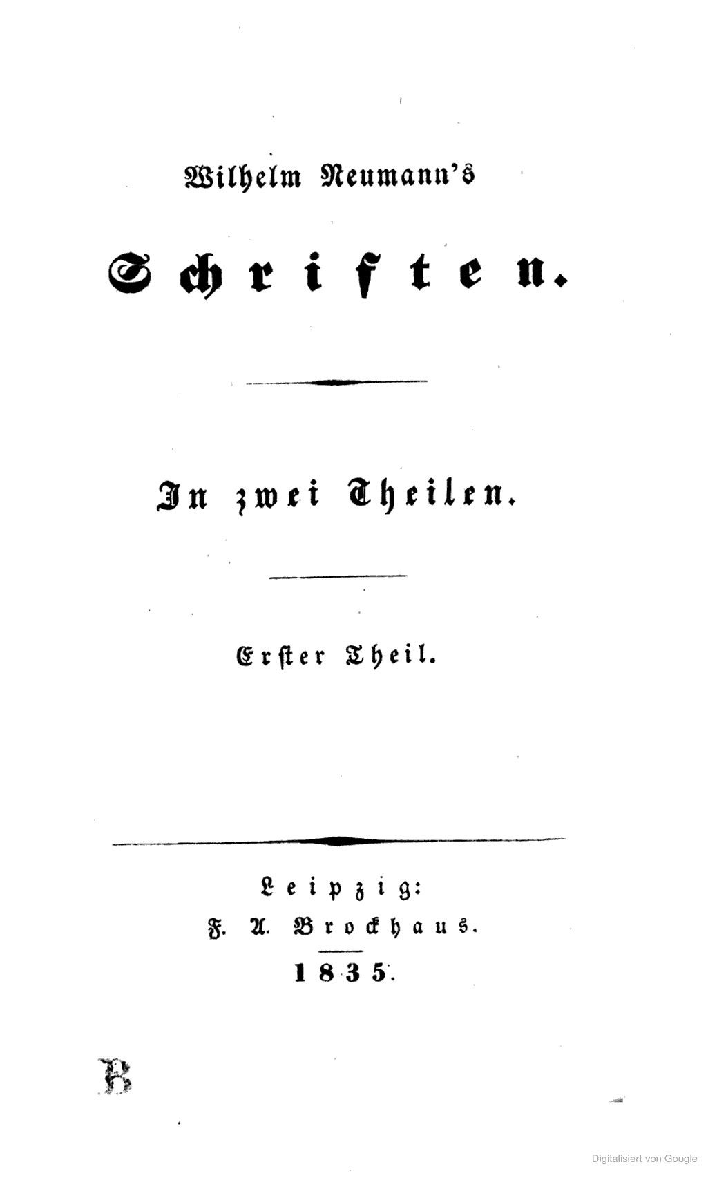 Novellen. Ein Band Novellen.1833 BT: 1176 Standort: Wien – Österreichische Nationalbibliothek (ÖNB) Signatur: 5574-A.1
