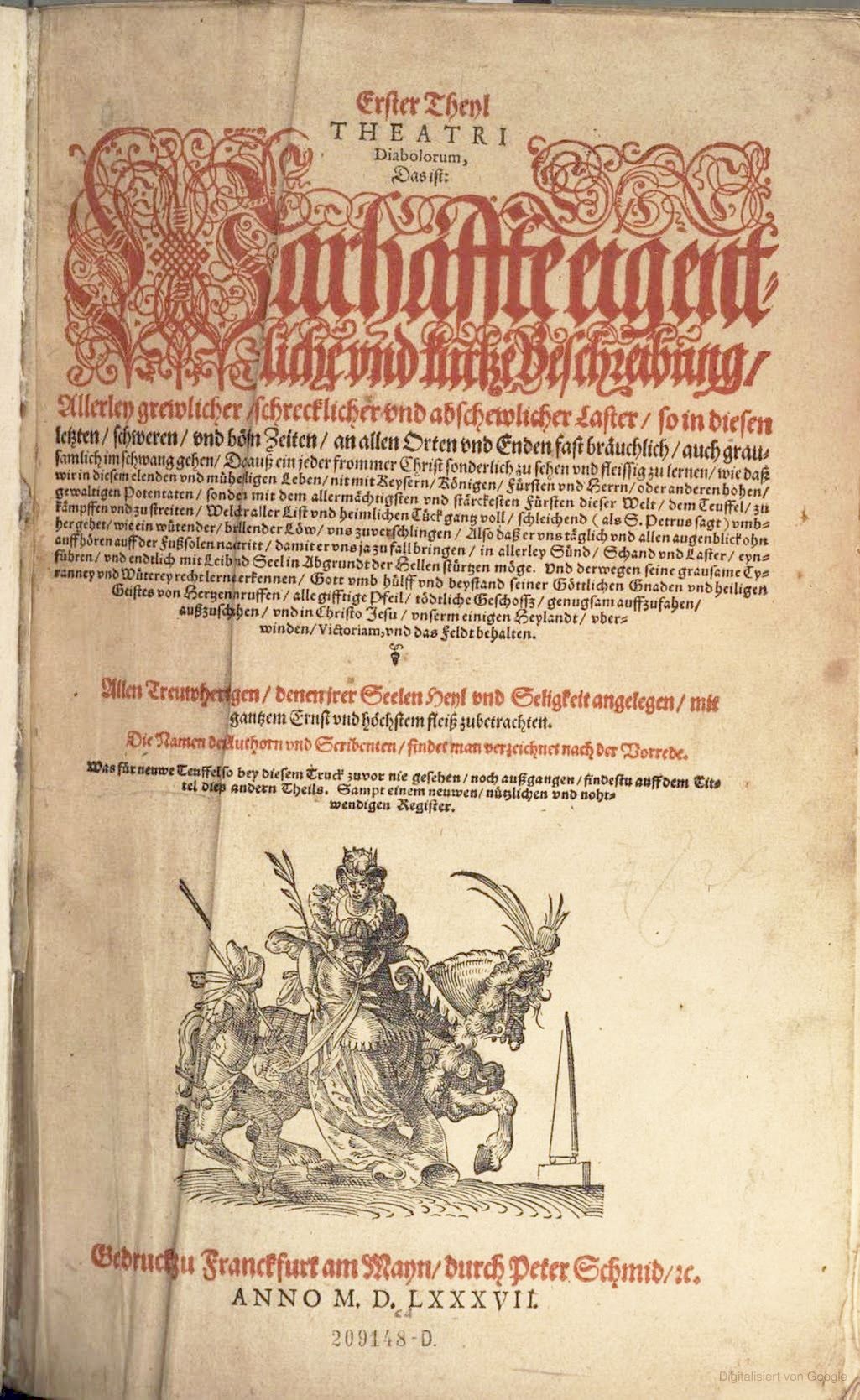 Theatrum Diabolorum. D. i. Beschreibung allerley grewlicher und abschewlicher Laster, so an allen Orten fast bräuchlich.1587 BT: 7289