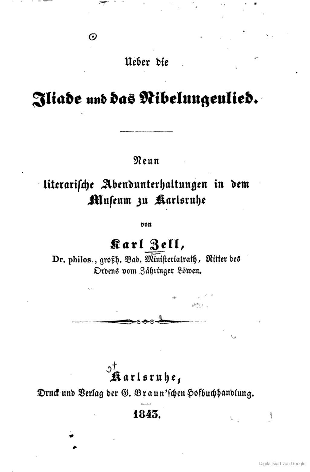 Ueber der Nibelungen Liet. An den Herrn Johann Joachim Eschenburg, Hofrath und Professor am Carolino zu Braunschweig von G.1795 BT: 998 Standort: Wien – Österreichische Nationalbibliothek (ÖNB) Signatur: 5698-B