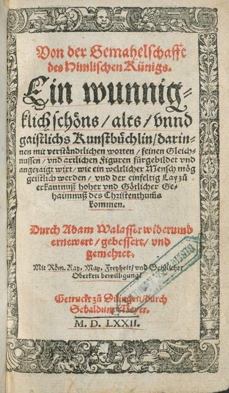Von der Gemahelschafft des himlischen Kunigs. Ein wunigklich schöns, alts, und gaistlichs Kunstbüchlein.1572 BT: 1501