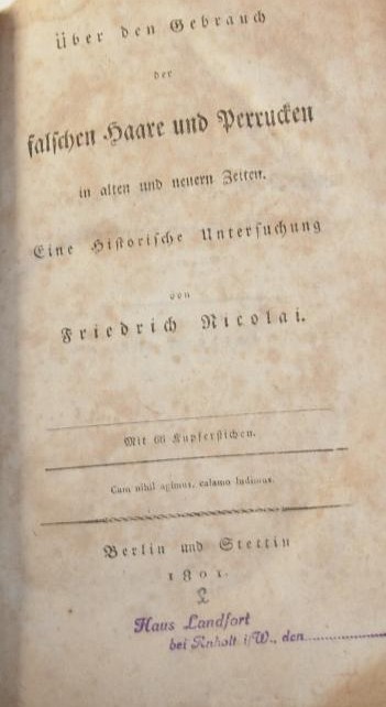 Über den Gebrauch der falschen Haare und Perrücken in alten und neuern Zeiten. Eine historische Untersuchung.1801 BT: 1007