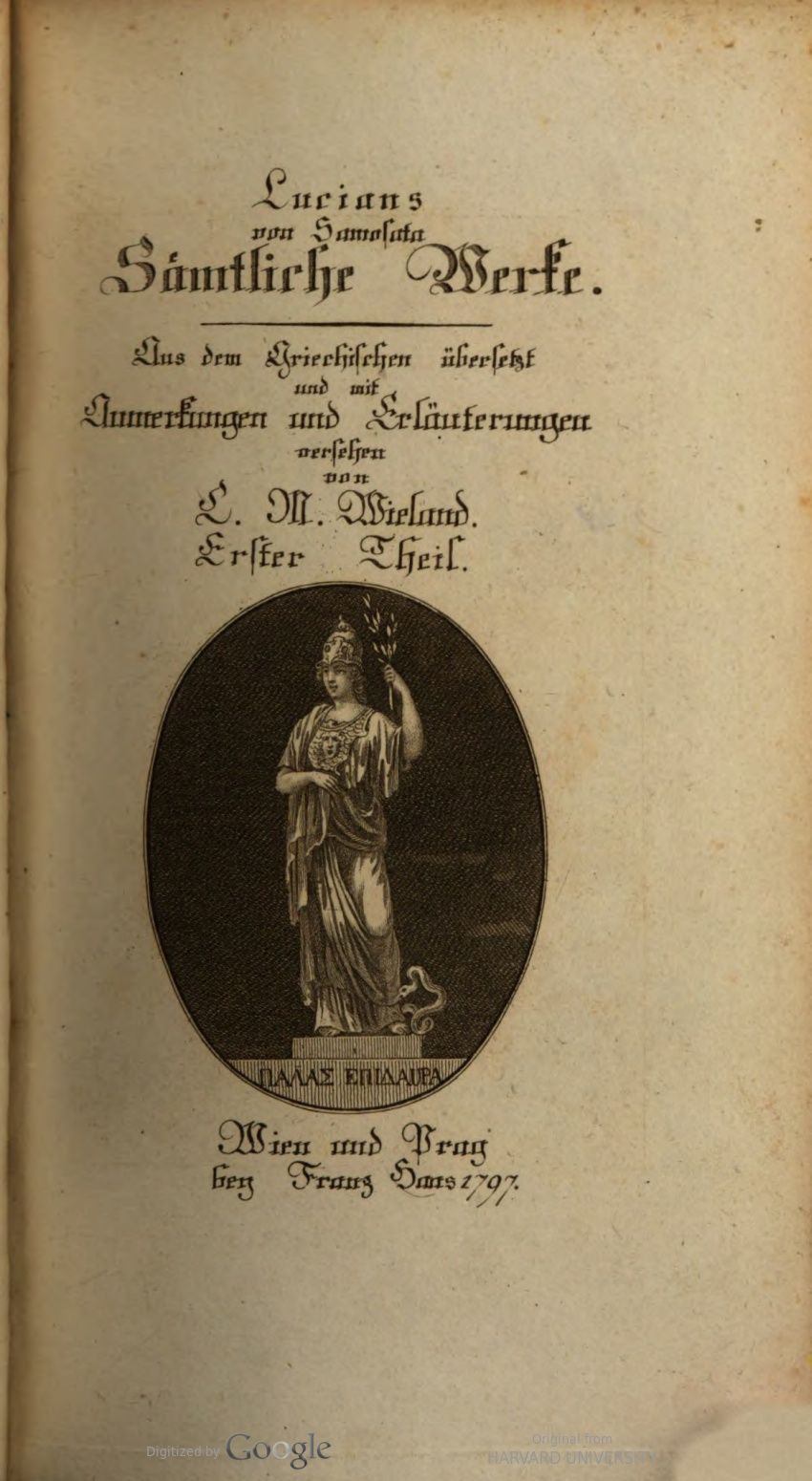 Lucians von Samosata sämmtliche Werke. Aus dem Griechischen Übersetzt und mit Anmerkungen und Erläuterungen versehen.1797 und 1798 BT: 3323