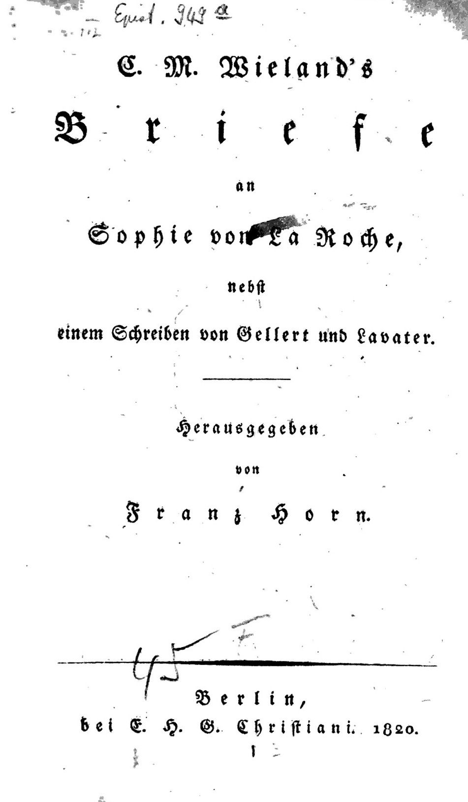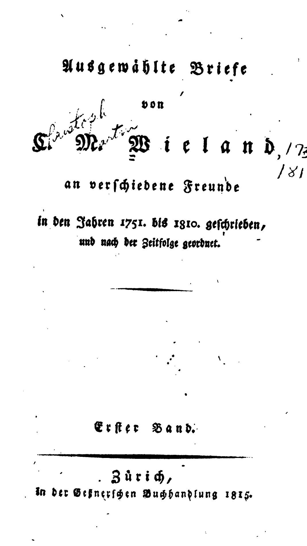 Ausgewählte Briefe an verschiedene Freunde. In den Jahren 1751 bis 1810 geschrieben, und nach der Zeitfolge geordnet.1815 BT: 1547 Standort: London - British Library Signatur: 10920.e.2.