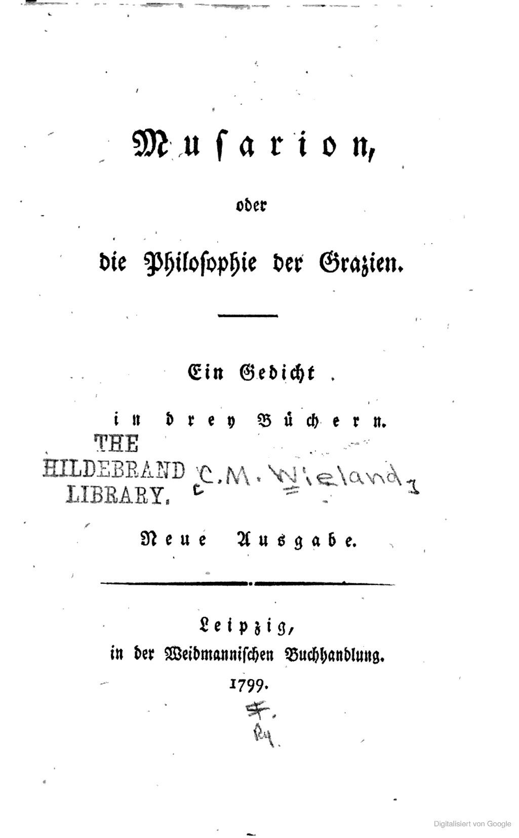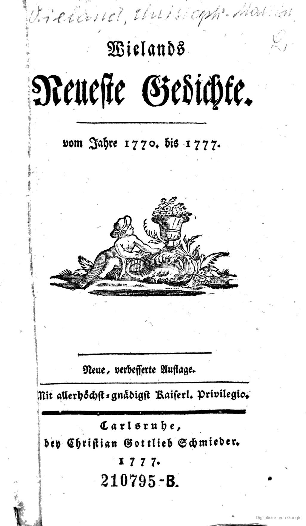Neueste Gedichte. Vom Jahre 1770 bis 1777.1777 BT: 1551 Standort: London - British Library Signatur: 11525.d.30.
