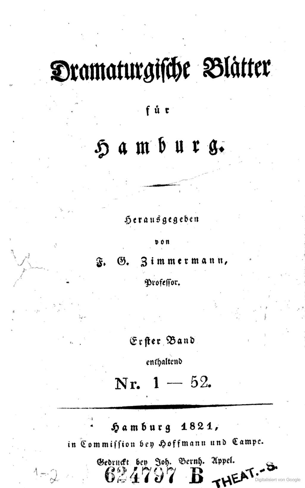 Theater-Journal für Deutschland.1781-84 BT: 1400 Standort: Berlin - Staatsbibliothek zu Berlin Signatur: Yp 1946