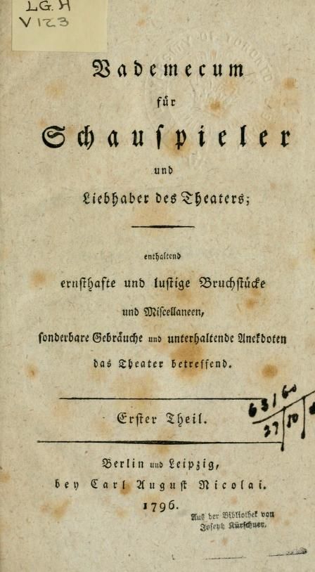 Theater-Journal für Deutschland.1780/81 BT: 1400 Standort: Berlin - Staatsbibliothek zu Berlin Signatur: Yp 1946