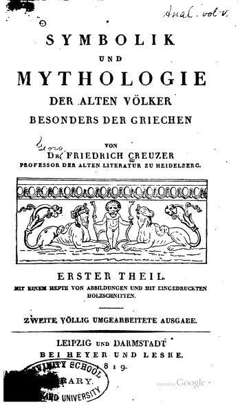 Symbolik und Mythologie der alten Völker, besonders der Griechen.