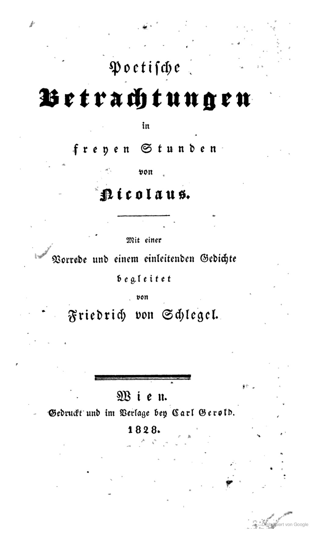 Poetische Betrachtungen in freyen Stunden. Mit einer Vorrede und einem einleitenden Gedichte begleitet.1828 BT: 1013 Standort: London - British Library Signatur: 11526.d.31.
