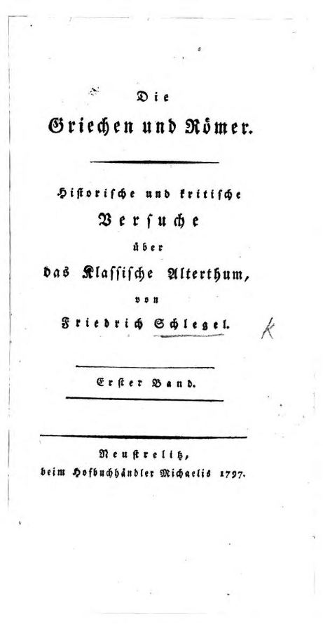 Die Griechen und Römer. Historische und kritische Versuche über das Klassische Alterthum.1797 BT: 6327 Standort: London - British Library Signatur: 1306.d.17.