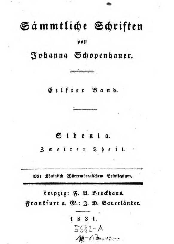 Sämmtliche Schriften. Elfter Band. Sidonia. Zweiter Theil.1831 BT: 1283 Standort: Wien – Österreichische Nationalbibliothek (ÖNB) Signatur: 5682-A.11