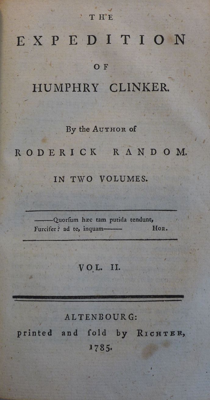 The expedition of Humphry Clinker.1785 BT: 2277 Standort: Breslau - Universitätsbibliothek Wrocław Signatur: 037778