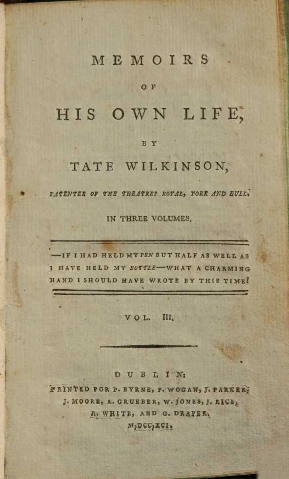 Memoirs of John Bannister, comedian.1839 BT: 1622 Standort: Standort derzeit unbekannt Signatur: Signatur der Preußischen Staatsbibliothek Berlin: Zc 1282