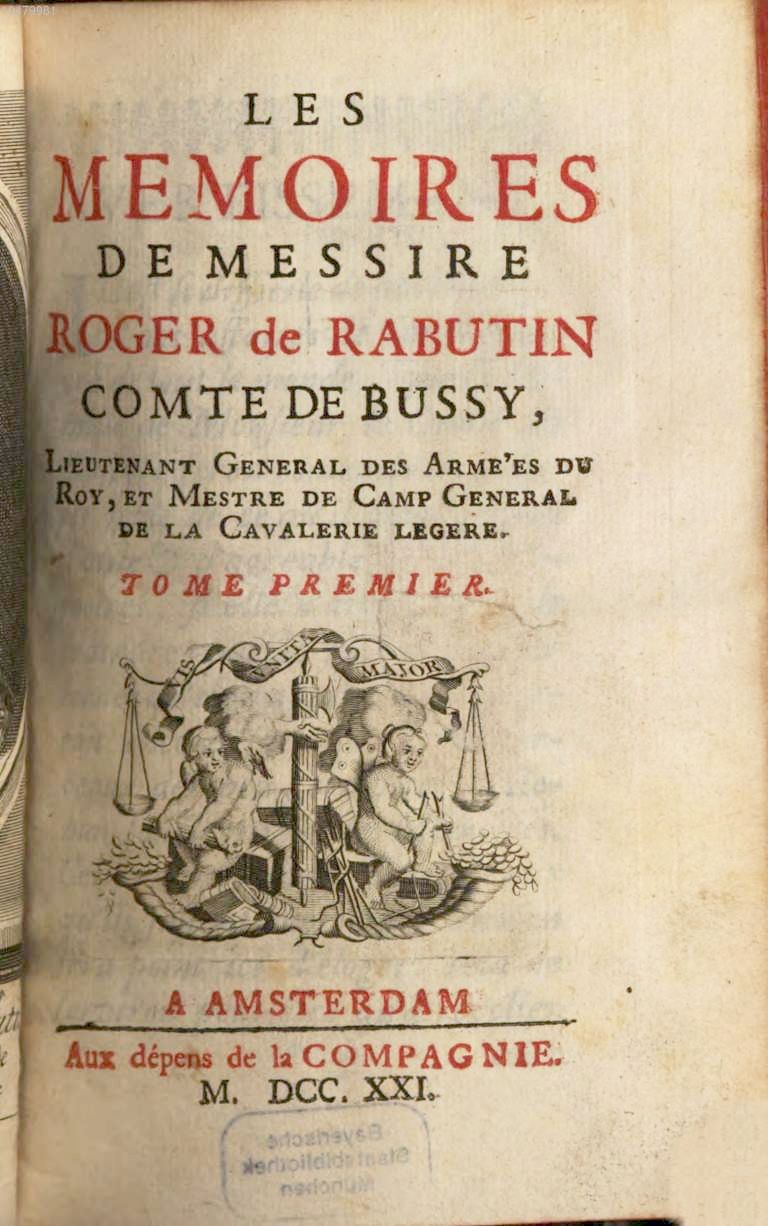Les Mémoires De Messire Roger De Rabutin Comte De Bussy, Lieutenant General Des Armées Du Roi, Et Mestre De Camp General De La Cavalerie Legere.