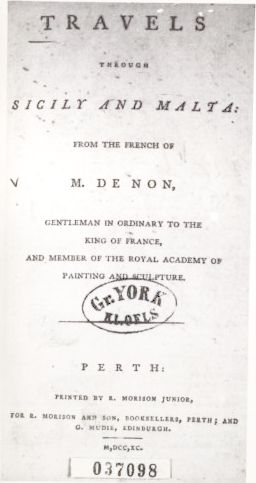 Travels through Sicily and Malta. From the French.1790 BT: 5122 Standort: Breslau - Universitätsbibliothek Wrocław Signatur: 037098