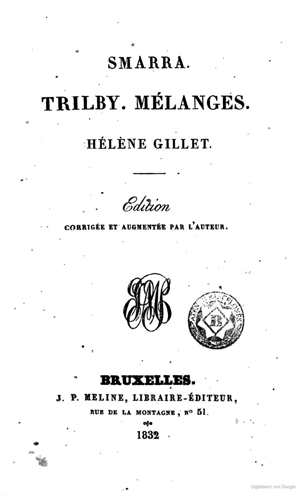 Smarra.– Trilby.– Mélanges.– Helène Gillet.– Mademoiselle de Marsan.