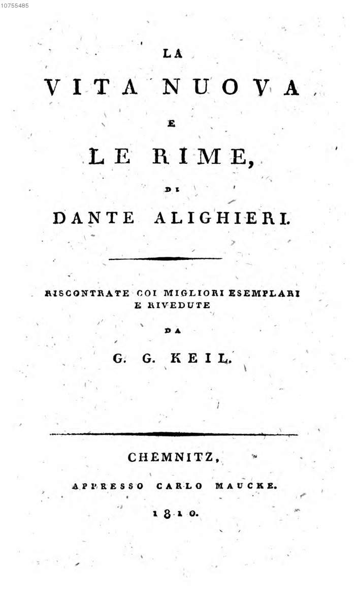 Prosaische Schriften. Mit Ausnahme der Vita nuova.1845 BT: 3670 Standort: Göttingen - Niedersächsische Staats- und Universitätsbibliothek Göttingen Signatur: 8 SVA VI, 39:1