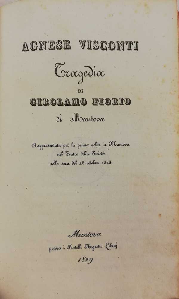 Agnese Visconti. Tragedia.1829 BT: 3838 Standort: Rostock - Universitätsbibliothek Rostock Signatur: Ck-1354.3 Schlüssel: 3838c