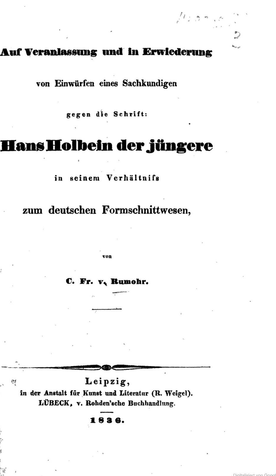 Herr Dr. Waagen und Herr von Rumohr als Kunstkenner. In Antwort auf die Schrift des Herrn Dr. Waagen gegen Hirt.1832 BT: 7417
