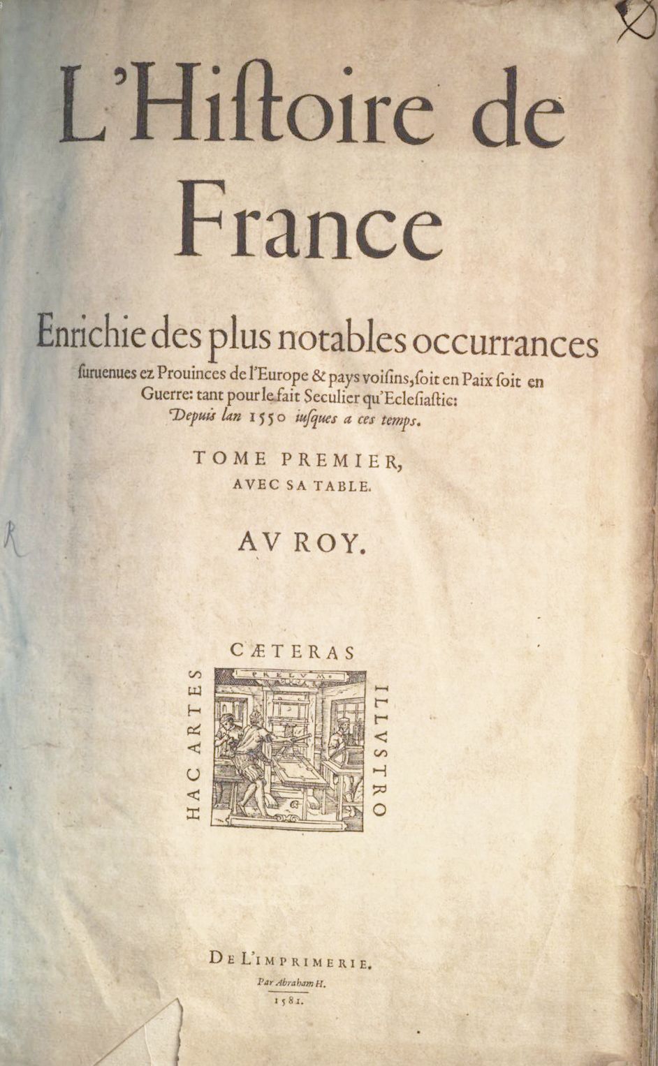 Histoire de France. Enrichie des plus notables occurances survenus en provinces de l’Europa et pays voisins etc.1581 BT: 5268