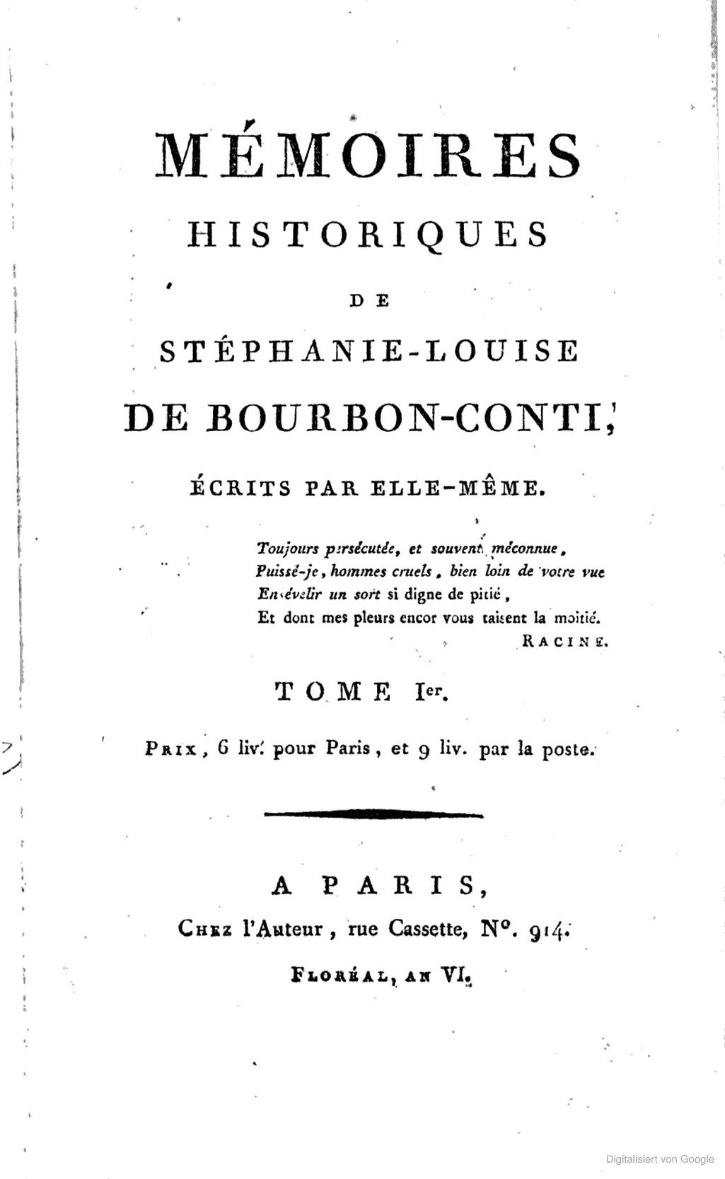 Mémoires.1824 BT: 5368 Standort: Stuttgart - Württembergische Landesbibliothek Signatur: Franz.G.oct.872-1