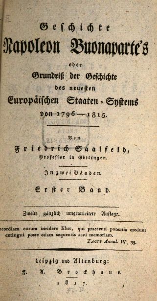 Geschichte Napoleon Buonaparte’s oder Grundriß der Geschichte des neuesten europäischen Staaten-Systems von 1796 - 1815.