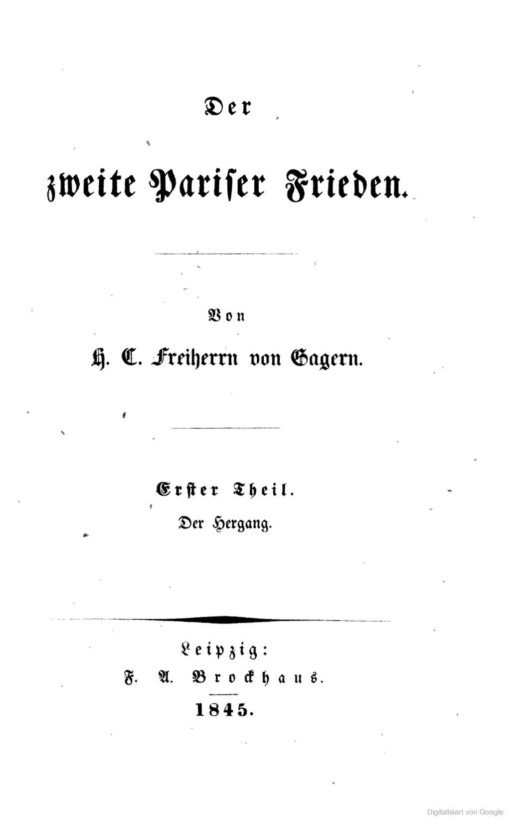 Mein Antheil an der Politik. V. Der zweite Pariser Frieden.1845 BT: 5306 Standort: London - British Library Signatur: 10707.d.24.