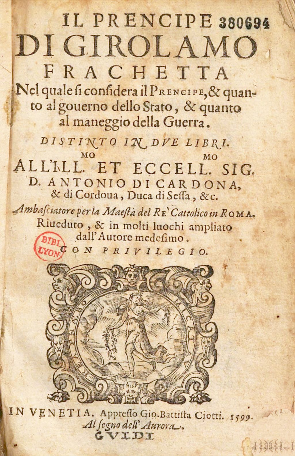 Il prencipe, nel quale si considera el prencipe e quanto al governo dello Stato e quanto al manneggio della Guerra.