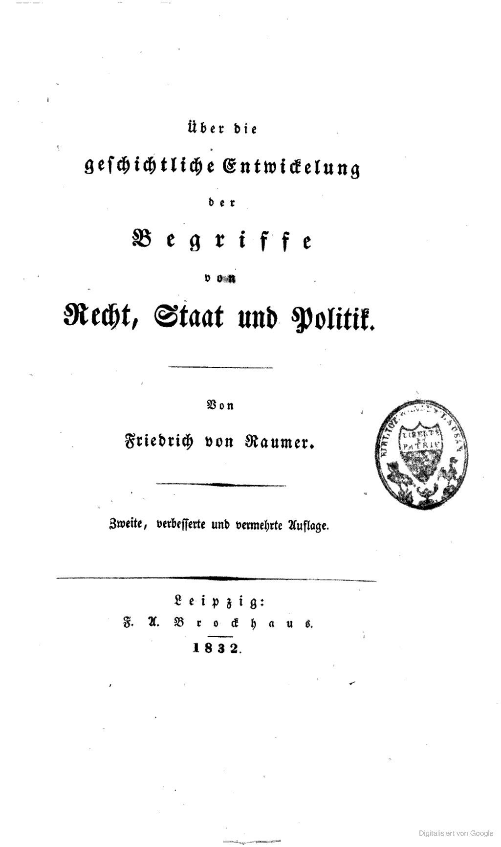 Über die geschichtliche Entwickelung der Begriffe von Recht, Staat und Politik.