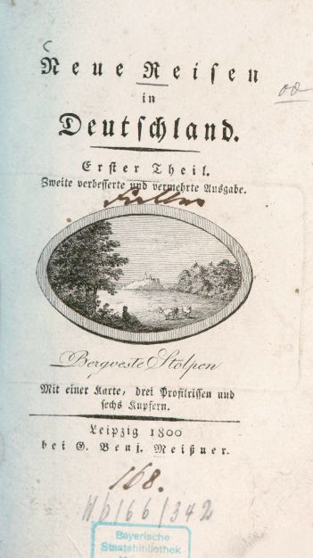 Wanderungen durch einen Theil von Franken und Thüringen. In Briefen an einen Freund.1795 BT: 5811 Standort: London - British Library Signatur: 10231.c.21