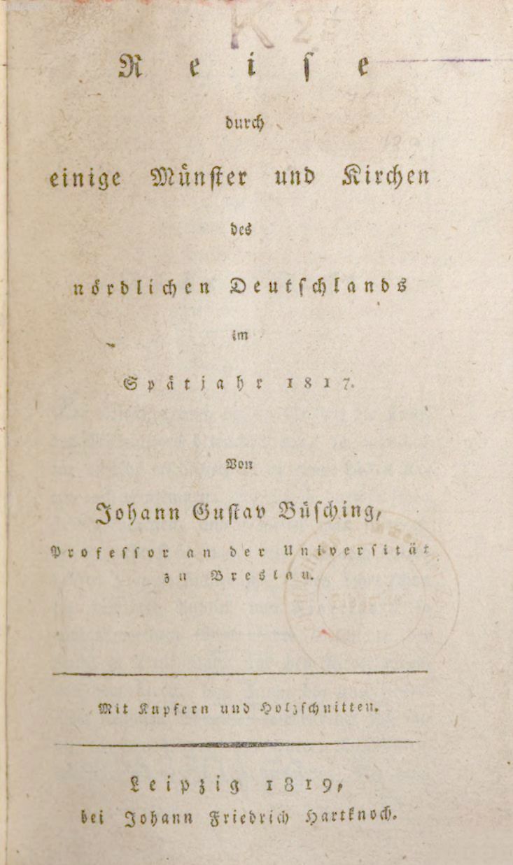 Vertraute Briefe auf einer Reise von Hannover über Braunschweig durch die Harzgegenden.1829 BT: 5127 Standort: London - British Library Signatur: 10250.b.13.