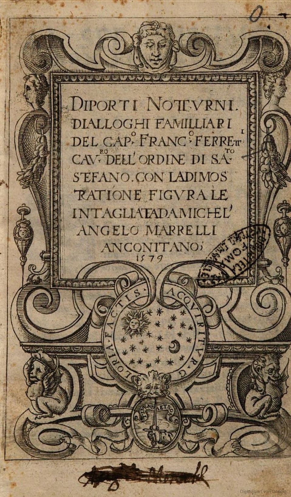 vel. Livre rare et dont les planches sont fort curieuses. Très recherché en Angleterre que l´auteur a visité et dont il parle avec éloge. [Titel laut BT 1849: Diporti notturni, dialoghi familliari con la dimostratione figurate intagliata da Michel´ Angelo Marrelli.]