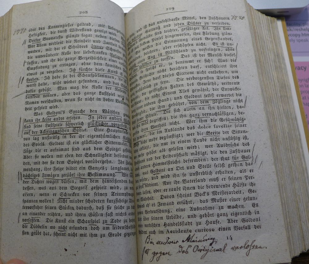 Durchgehend zahlreiche Marginalien, An- und Unterstreichungen von Tiecks Hand, Tinte und Bleistift