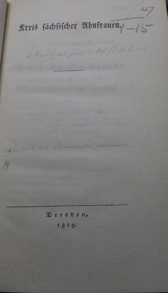 cart. Als Manuscript gedruckt. [Titel in BT 1849: Kreis sächs. Ahnfrauen.]