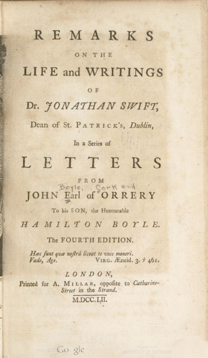 Remarks on the life and writings of Dr. Jonathan Swift, dean of St. Patrick’s, Dublin.