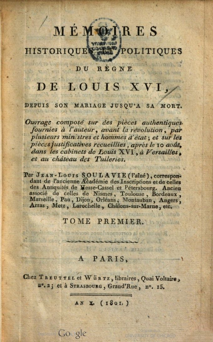 Mémoires historiques et politiques du règne de Louis XVI. depuis son mariage jusqu’à sa mort.