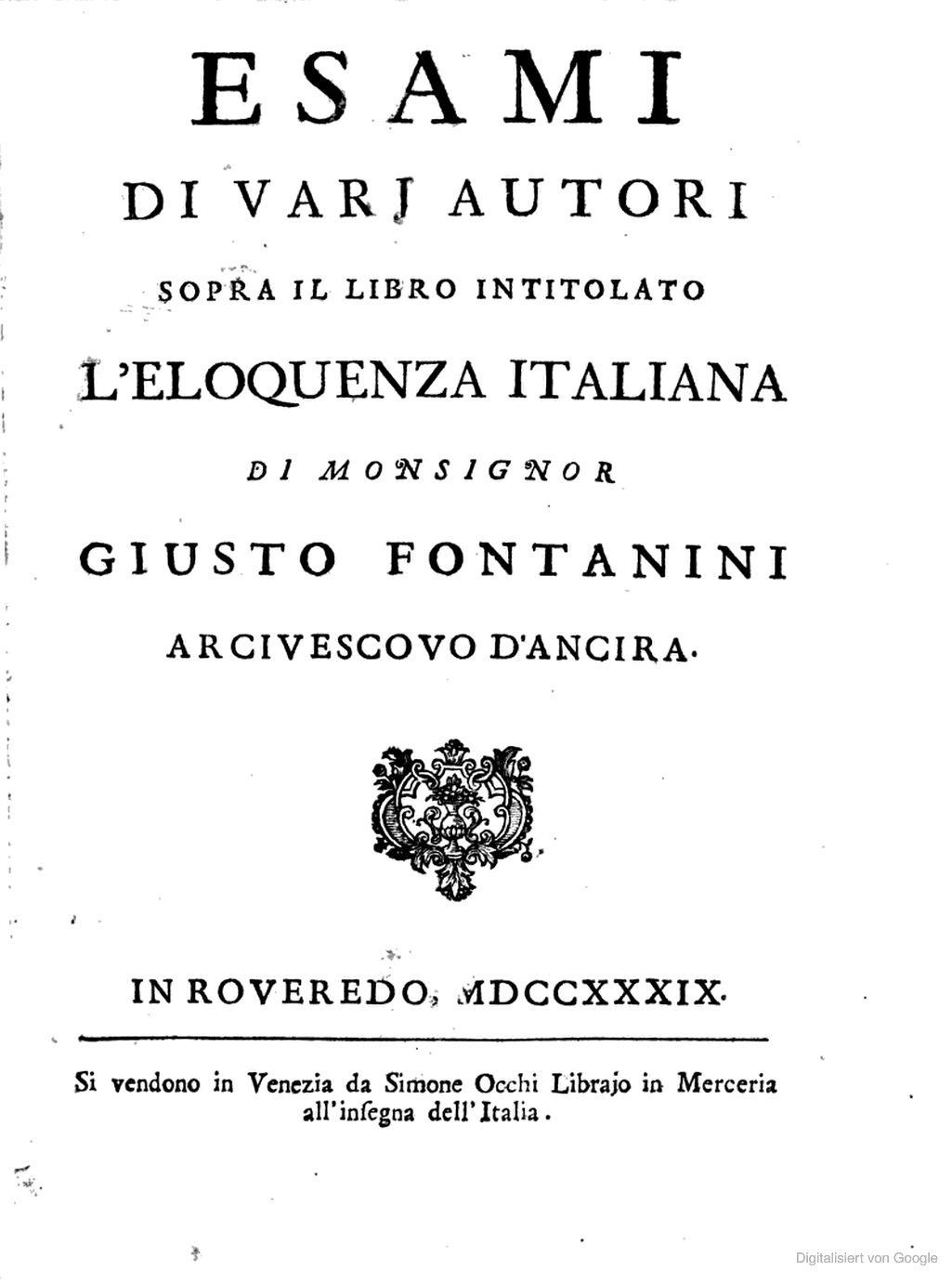 Esami di varj Autori sopra il libro intitolato l’Eloquenza Italiana.