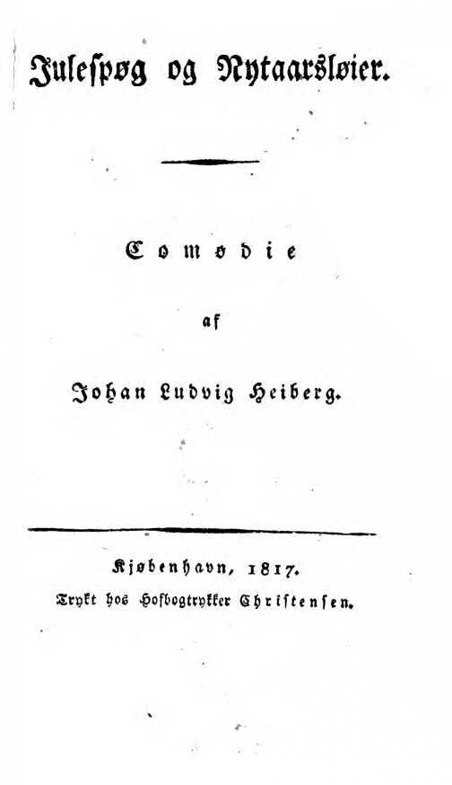 Christian Molbech an Ludwig Tieck. Brief vom 17.10.1820: "Ein Bruder meines lieben und vertrauten Freundes, Hrn. I. Deichmann, Besitzer der Gyldendalschen Buchhandlung, reist nach Berlin und andern Städten, um seine Fertigkeit und Kenntniße als Buchdrucker zu erweitern. Mit ihm schicke ich [...] die Comedie von Heiberg (der noch in Paris ist)" (In: Briefe an Ludwig Tieck. Ausgewählt und hg. von Karl von Holtei. Vier Bände. Breslau: Eduard Trewendt 1864, Bd. 3, S. 1-6, hier S. 2.); am 13.3.1821 bedankt sich Tieck bei Molbech für diese Übersendung (H: Kgl. Bibl. Kopenhagen, NKS 2336 4o)