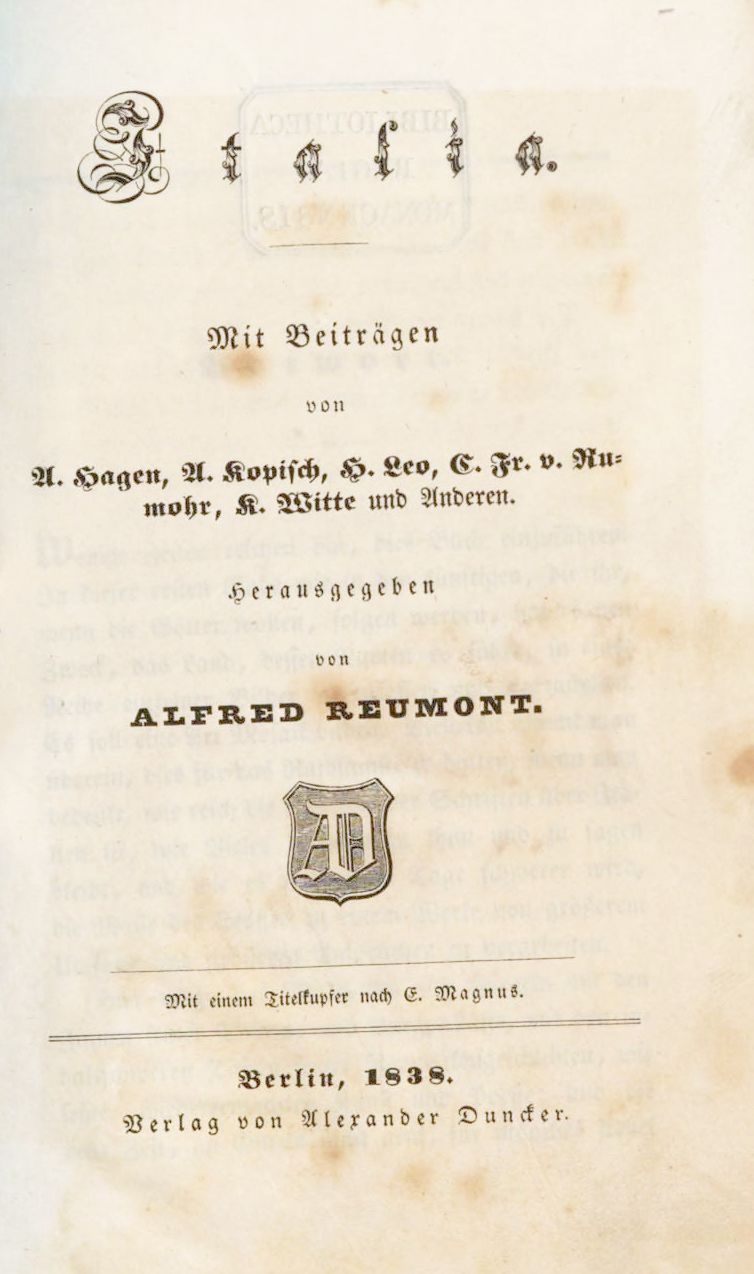 Mit Beiträgen v. A. Hagen, Kopisch, Leo, Rumohr etc.