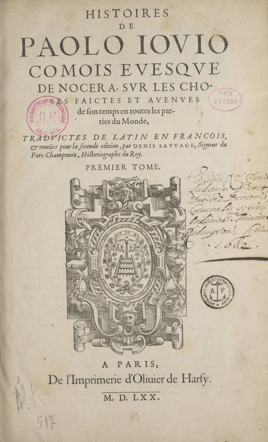 Histoire sur les choses faictes et avenues de son temps en toutes les parties du Monde.