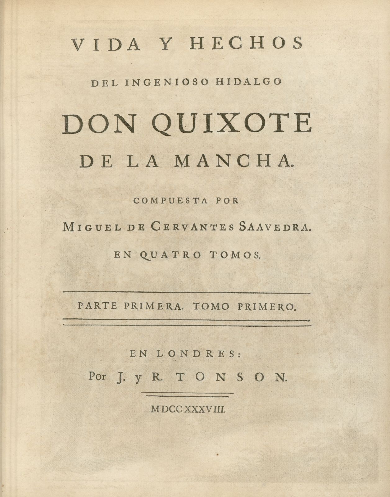 fig. d. r. Belle édition ornée de fig. par Vertue et Vanderbank, et enrichie de la vie de Cervantes par Greg. Mayans i Siscar.