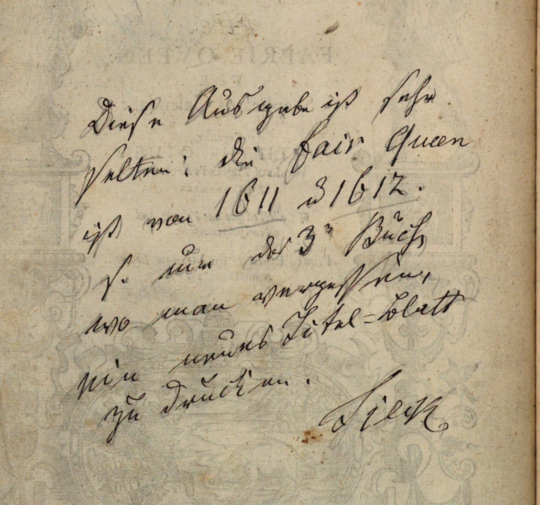 Adligat, in BT als: The Faerie Queen, the Sheppards Calendar together with the other works of England's Arch-Poët Edm. Spenser. Collected into one Volume and carefully corrected. angeführt. Jahr in BT: 1611, 1612, 1617