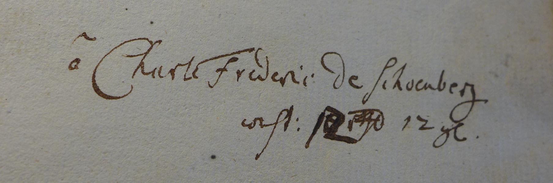 Besitzeintrag Tinte: á Charle Frederic de Schoenberg [?]