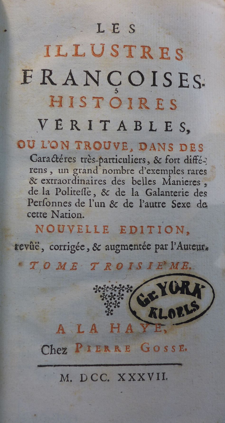 Nouvelle edition, revûë, corrigée & augmentée par l’auteur.