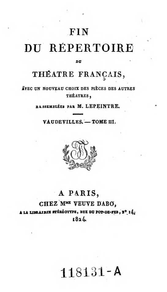 Fin du répertoire du théatre français, avec un nouveau choix des pièces des autres théatres.