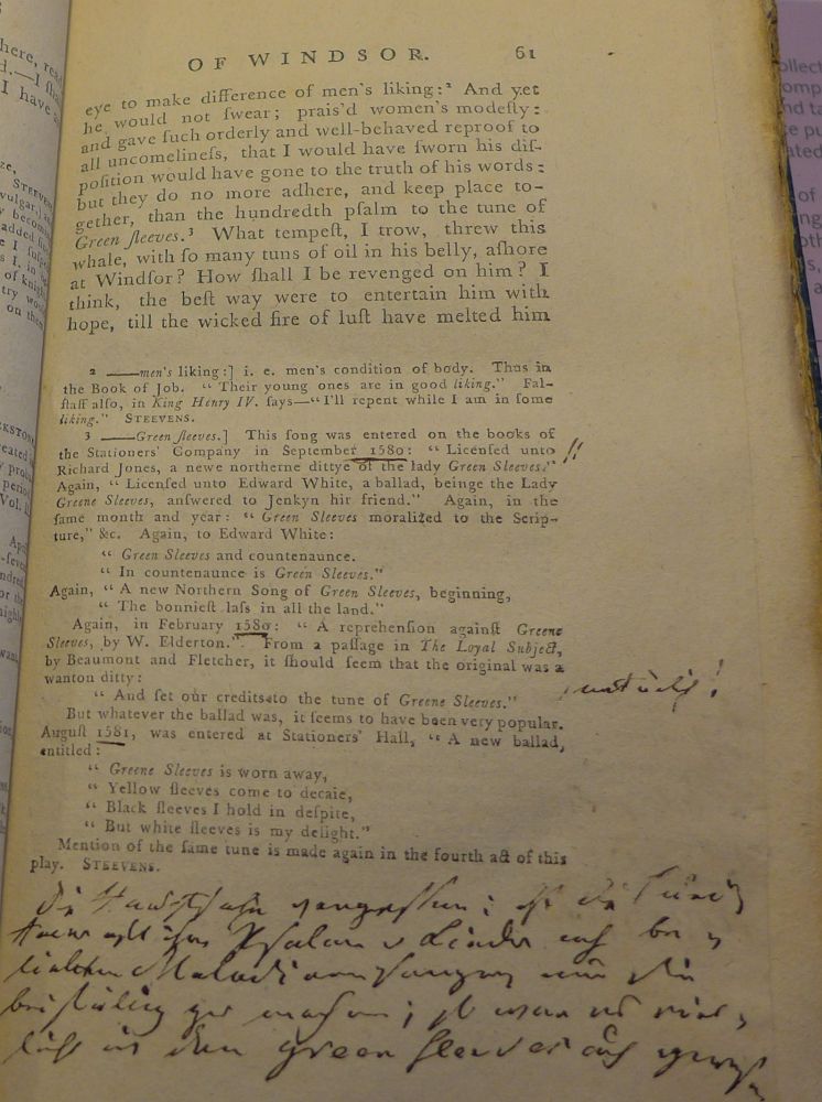 Marginalien Tiecks. d. r. n. r. Exemplaire unique et de la plus grande importance, contenant des notes sans nombre de la main de M. Tieck. Ces notes renferment les fruits d'une étude de plus de 40 ans sur le grand poëte, par son plus grand traducteur et commentateur et forment le texte du grand ouvrage sur Shakspeare, promis depuis si lontemps. Titel in BT: The plays of Shakespeare with the corrections and illustrations of various commentators, to which are added notes by Johnson and Steevens.