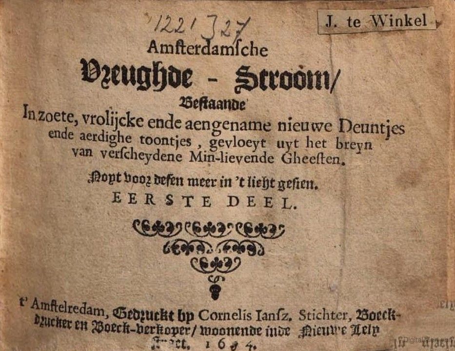 Bestaande in zoete, vrolijcke ende aengename nieuwe deuntjes ende seer aerdige toontjes, gevloeyt uyt het breyn van verscheydene Minl-ievende Gheesten.