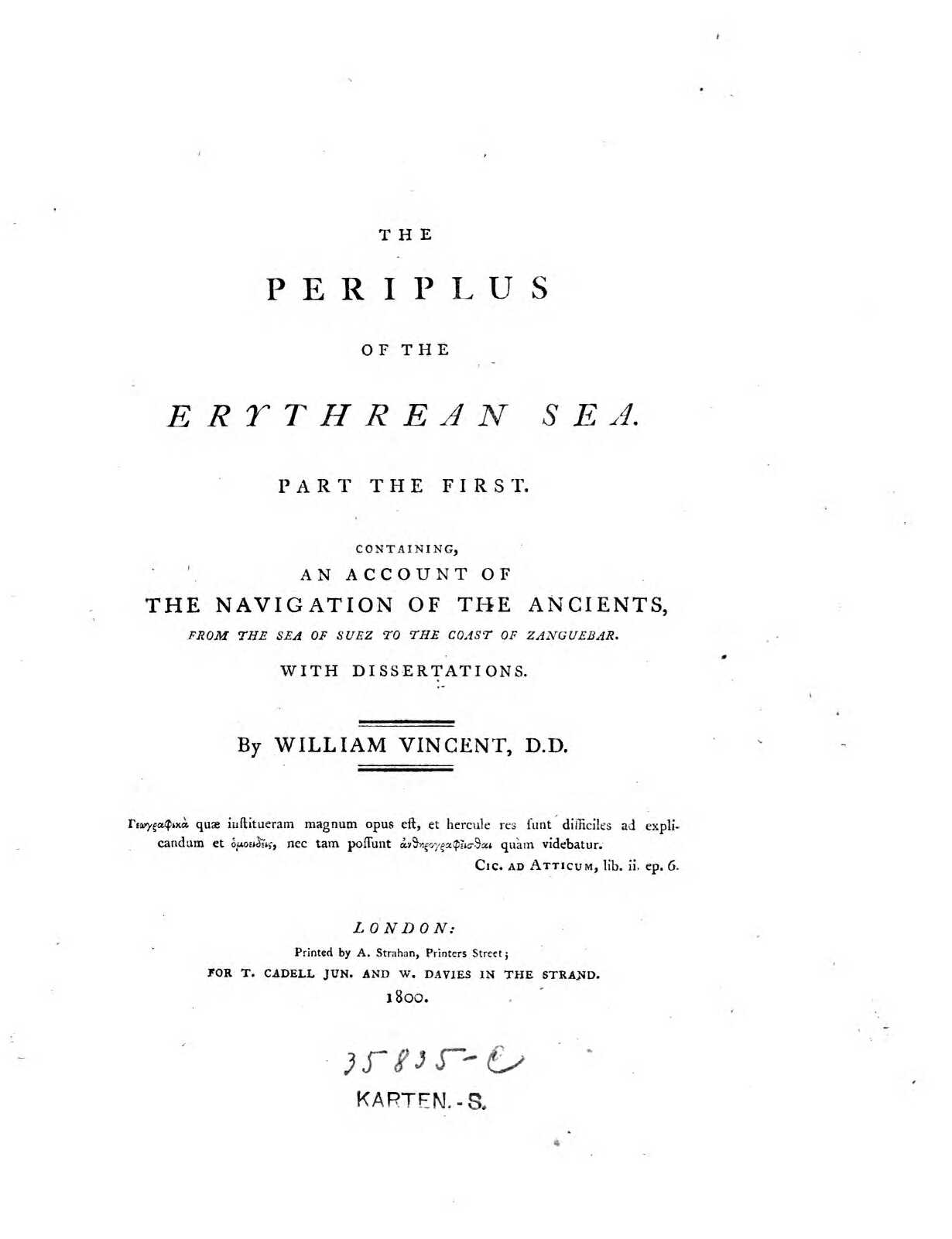 Part the First. Containing an Account of the Navigation of the Ancients, from the Sea of Suez to the Coast of Zanguebar. With Dissertations.