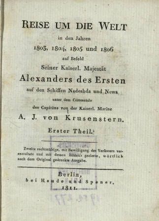 Auf Befehl Seiner Kaiserl. Majestät Alexanders des Ersten auf den Schiffen Nadeshda und Newa unter dem Commando des Capitäns von der Kaiserl. Marine.