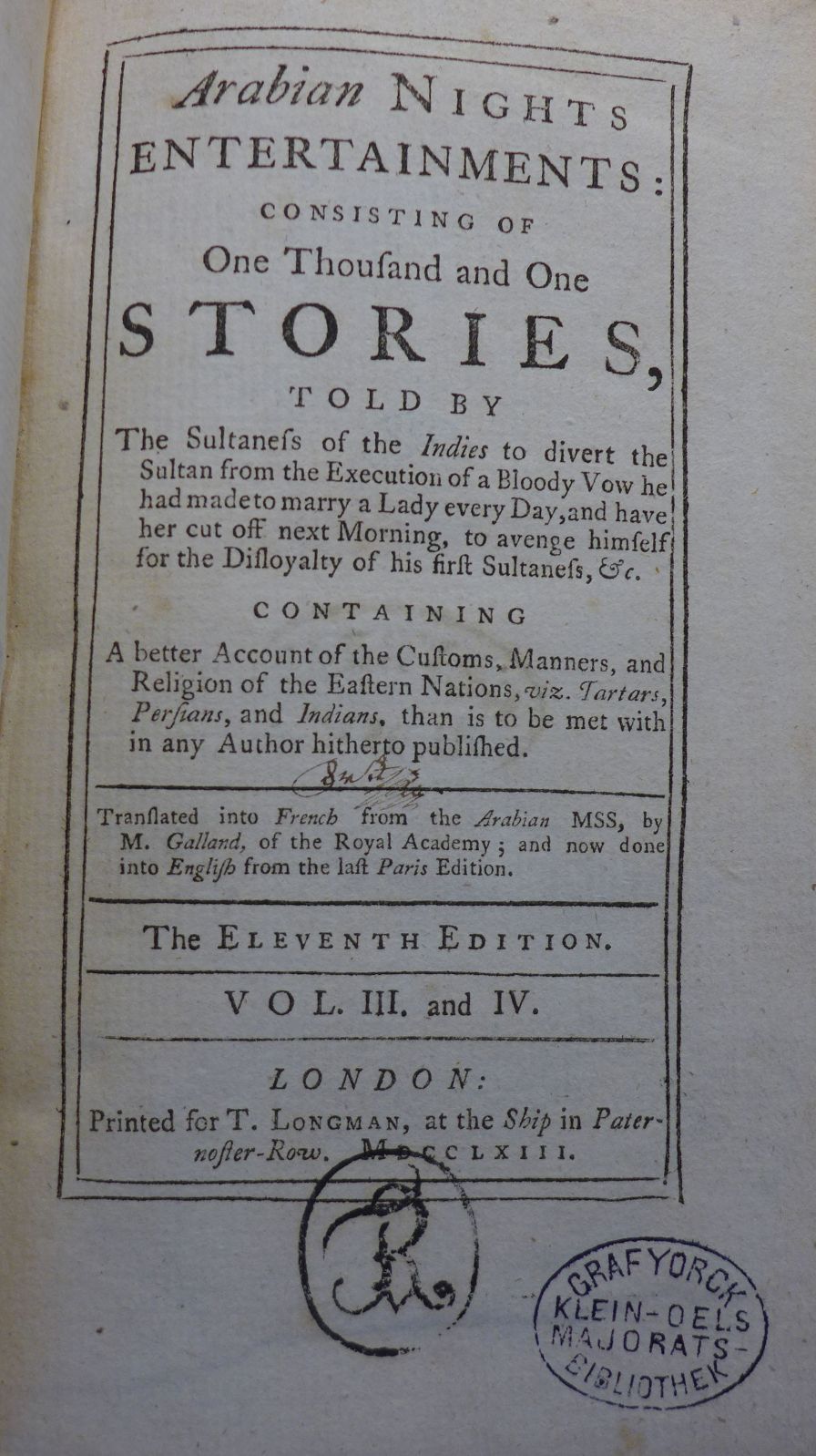 Consisting of One Thousand and one Stories, told by the Sultaness of the Indies to divert the Sultan from the Execution of a Bloody Vow he had made to marry a Lady every Day, and have her cut off next Morning, to avenge himself for the Disloyalty of his first Sultaness, etc.